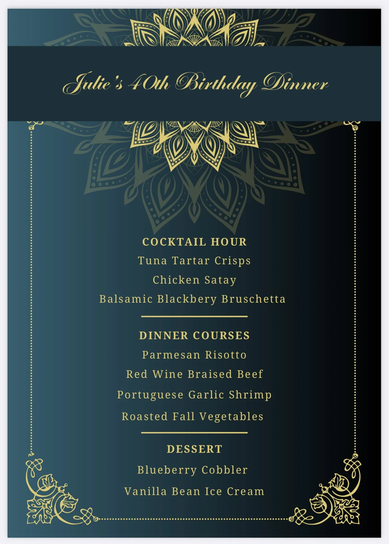 Brunch, ladies’ lunch or dinner…we do it all. Family friendly or adults only, we cater to your specific needs. Let’s start planning something magical together today!